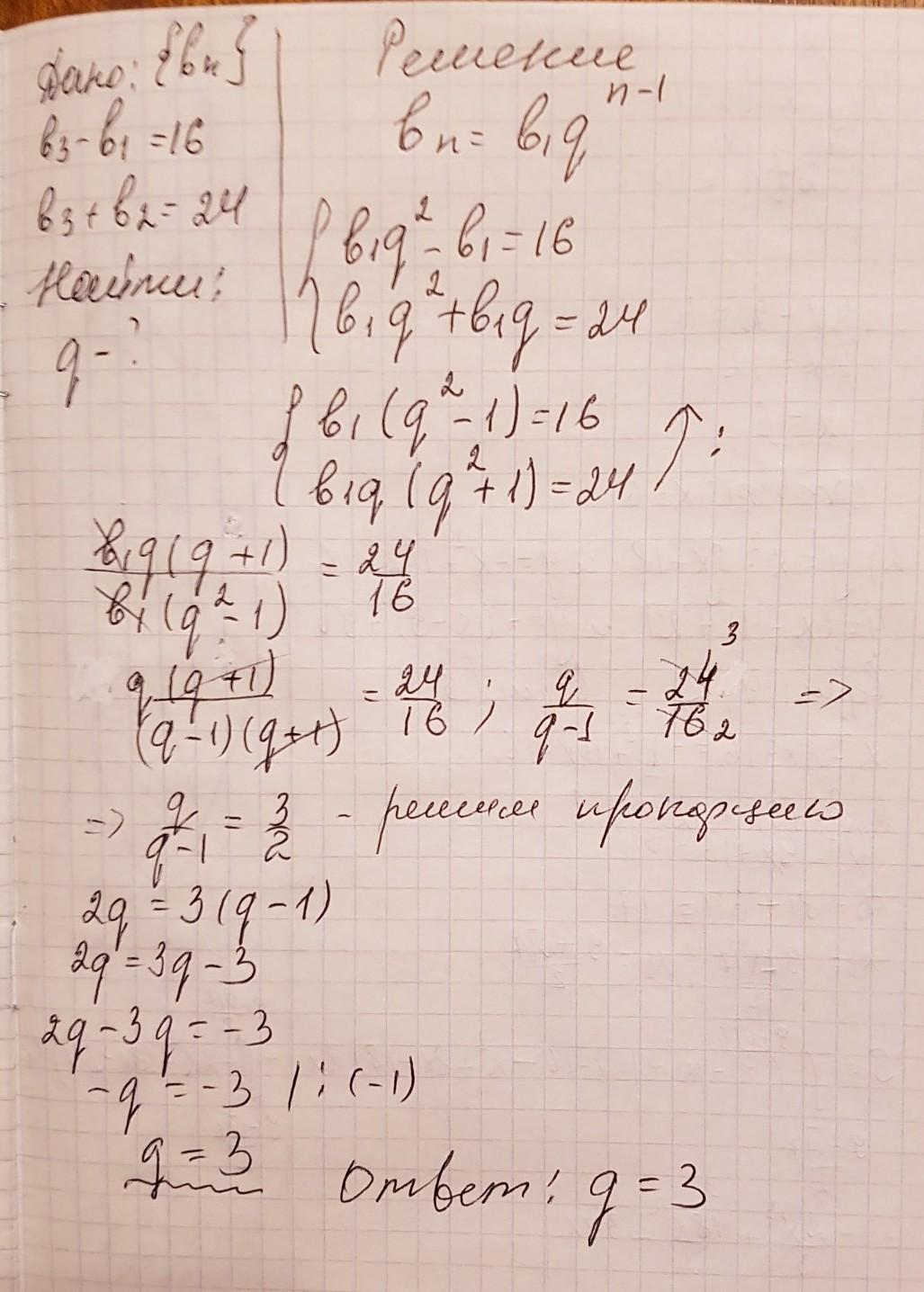 b3-b1=16 и b3+b2=24 ? (На данном сайте есть подобное задание, даже не подобное, а точно такое же. Только вот я не понял решения. Не могли бы вы помочь мне с решением этой задачи максимально понятным языком?)