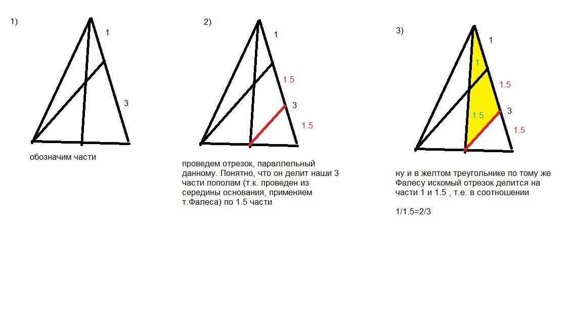 Дан ΔАВС равнобедренный, боковые стороны AB=BC. На стороне ВС взяли точку D, при этом BD : DC = 1 : 3. Нужно определить в каком отношении AD делит высоту BH ΔАВС, считая от вершины В.