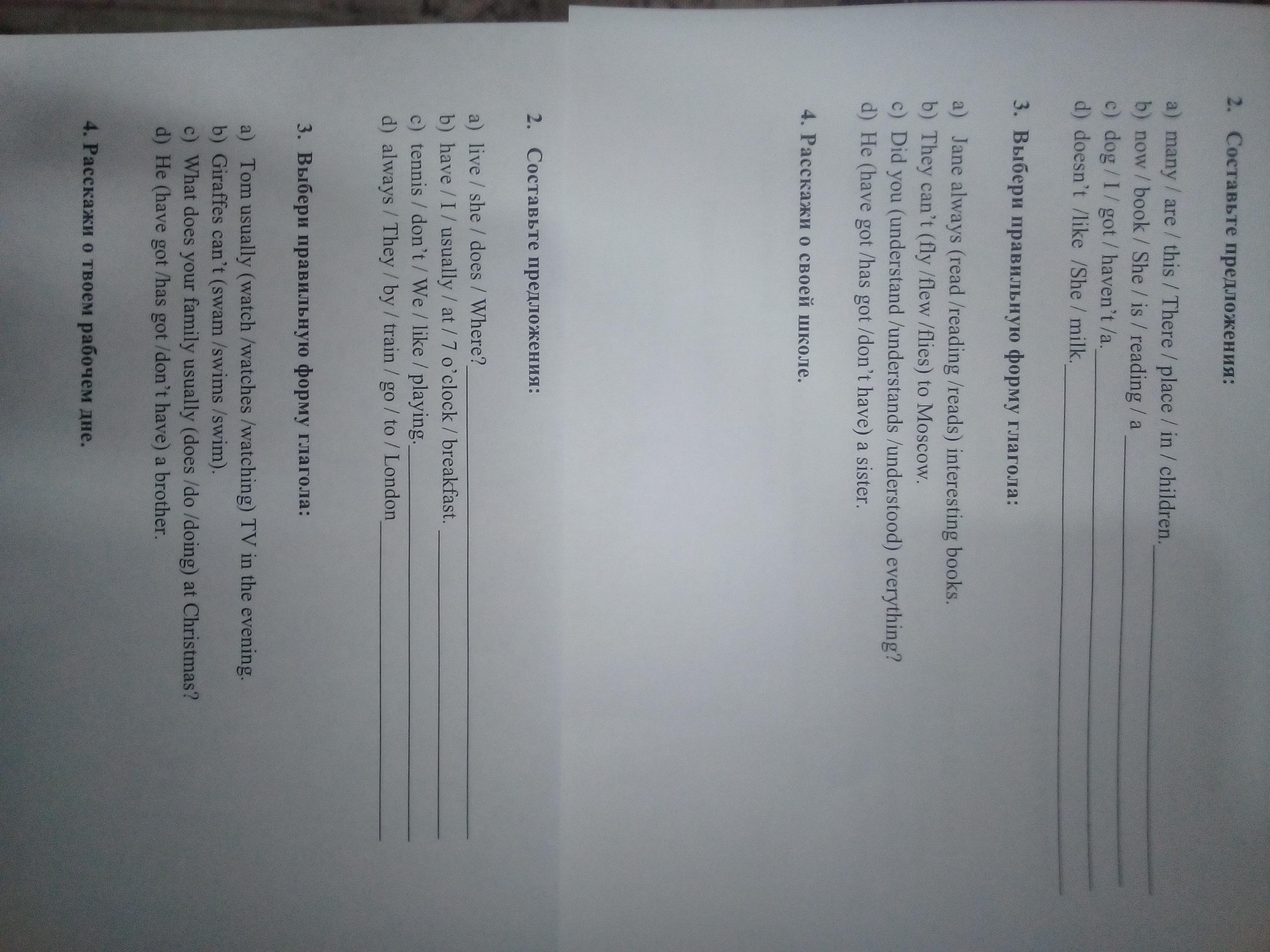 She does not like milk. Следующие задание read,flies,understood,has got. Следующие задание where does she live ?,i usually have breakfast at 7o clock.we do not like playing tenis . They always go to london by to train.с следующие задание : 2,3,3,2