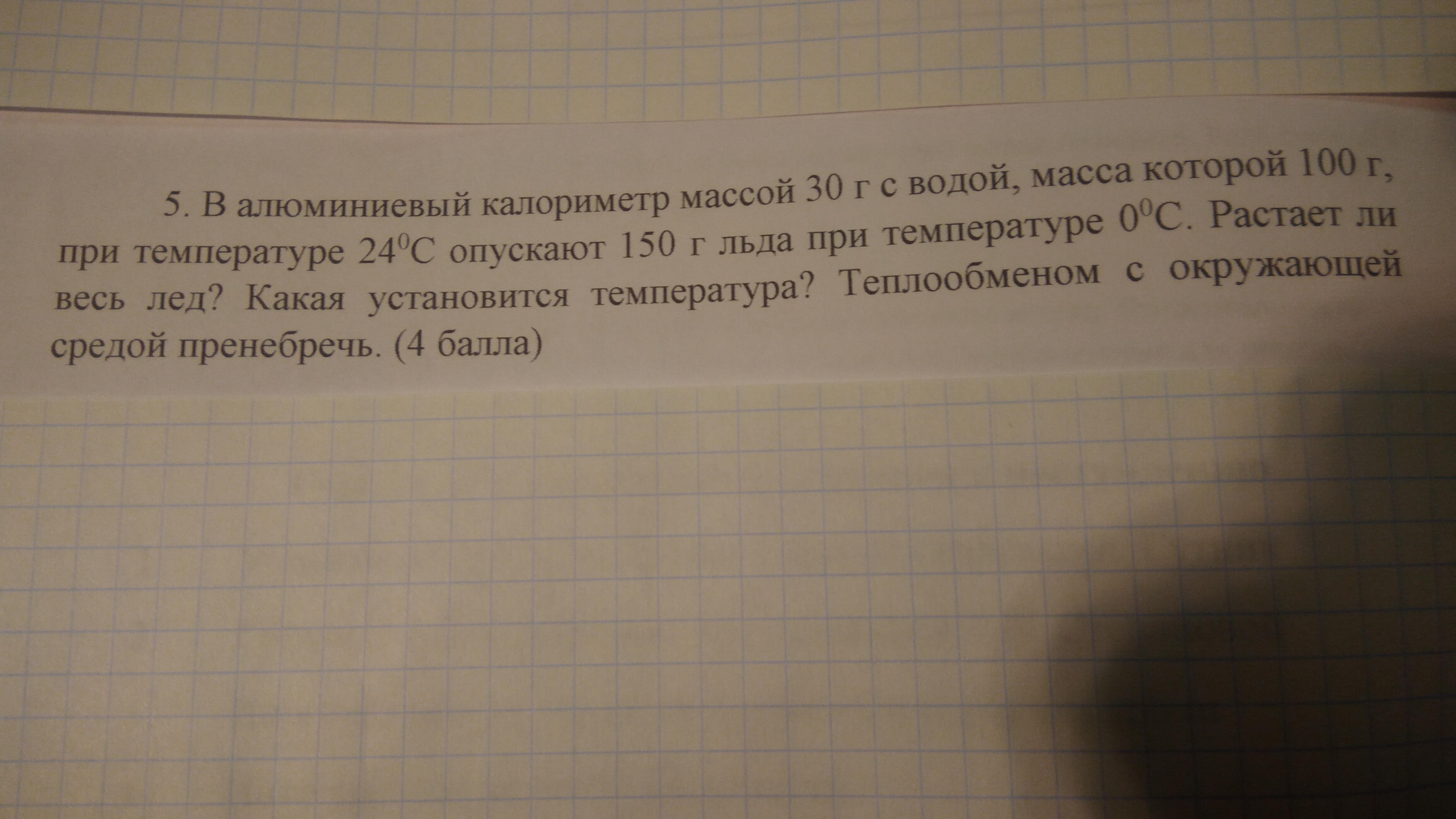 4. Масса льда в этом случае, которая не раствориться m = "дельта"Q / "лямбда" = 46476/330000 = 0.141 кг = 141 г
