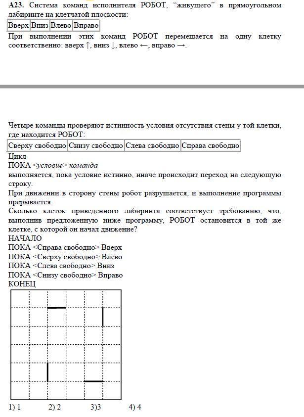 Сколько клеток приведенного лабиринта соответствует требованию, что, выполнив предложенную ниже программу, РОБОТ остановится в той же клетке, с которой он начал движение?