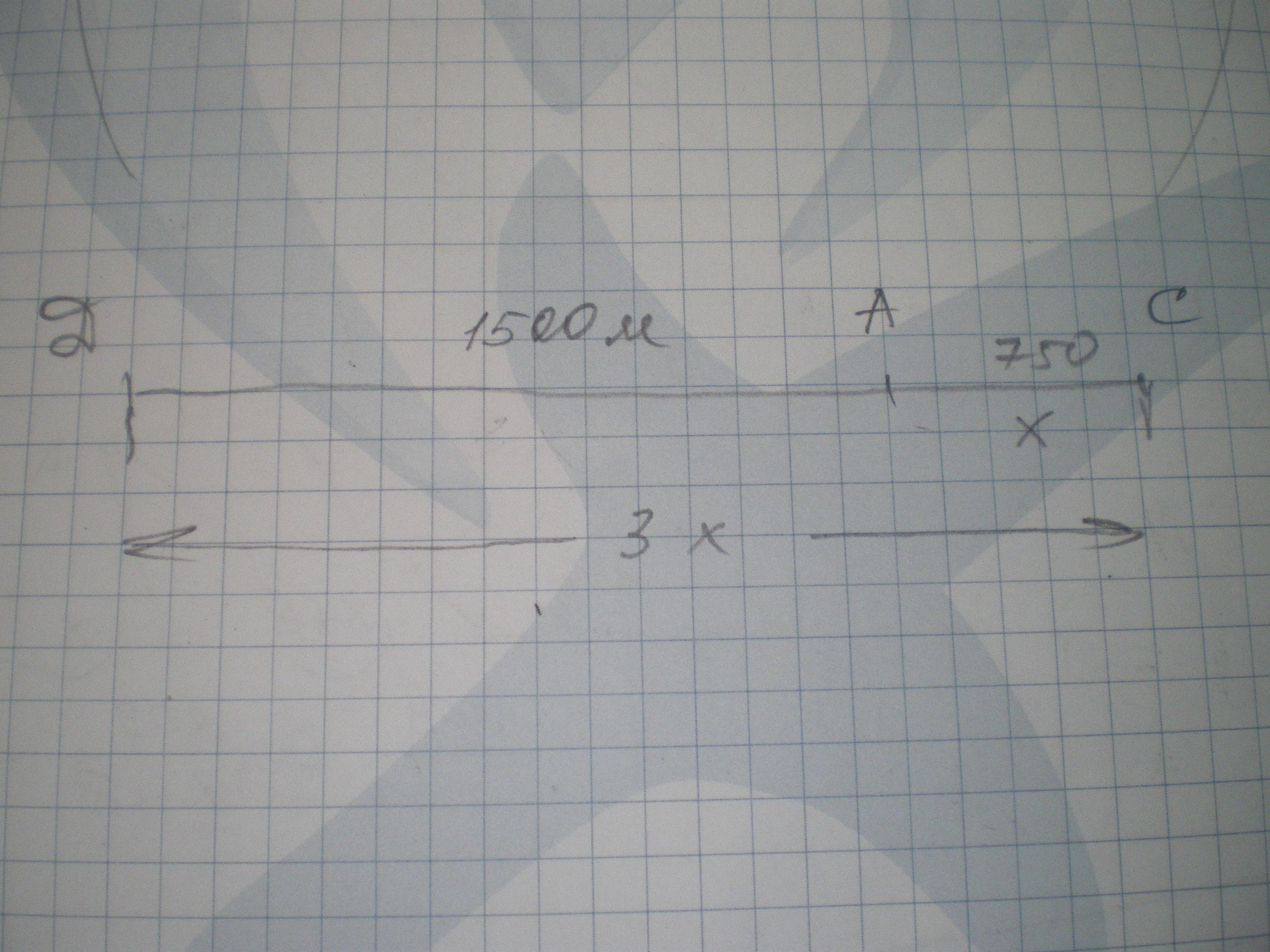 Тогда ДА=1500 м., АС=х м, ДС=3х м.
