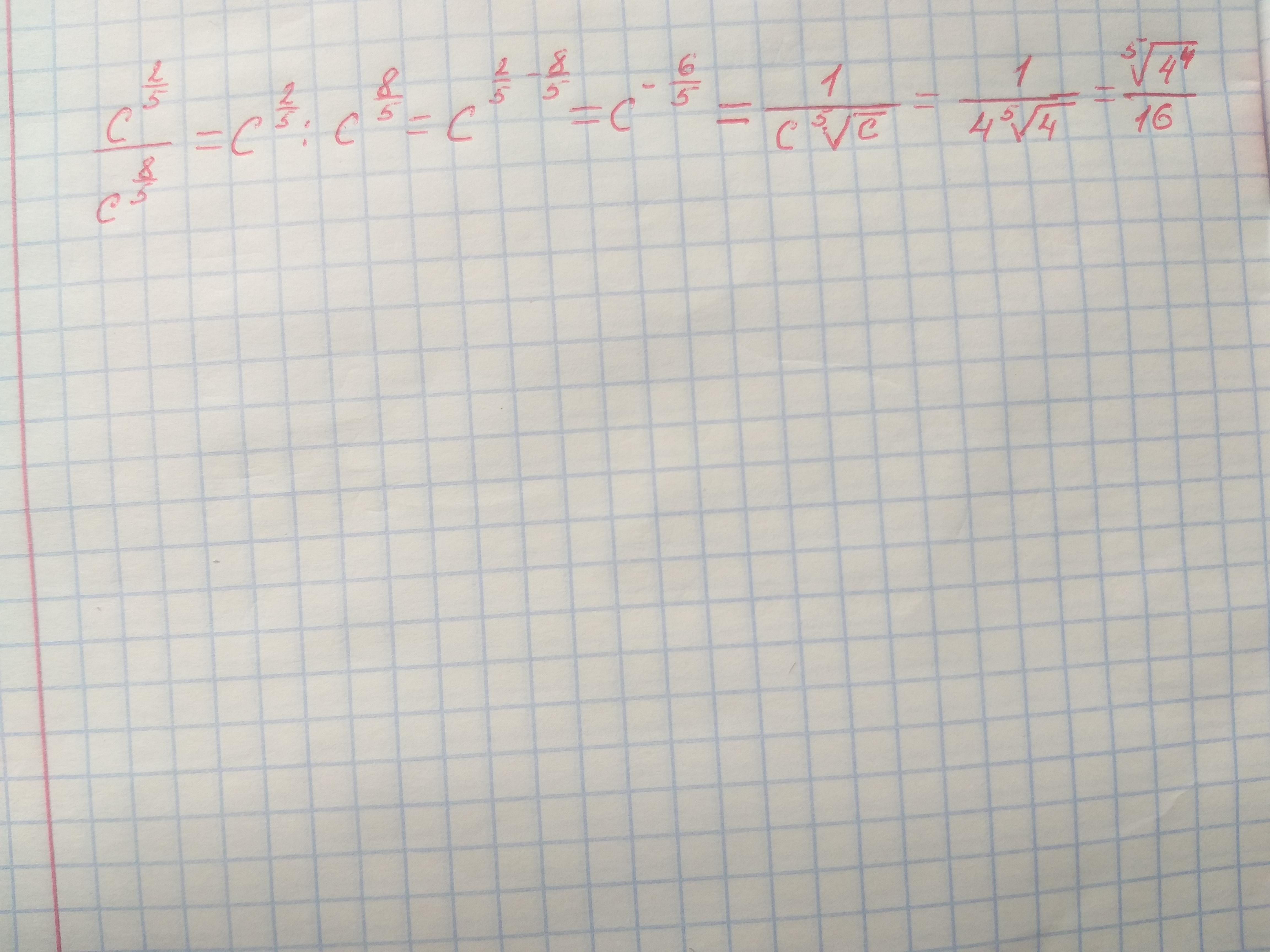 c^(25) : c^(8/5) = c^(2/5 - 8/5) = c^(-6/5)