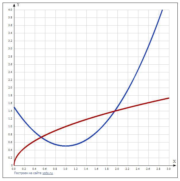 Число х = 0,5256443 можно принять за одну из точек пересечения с точностью до 7 знаков.
