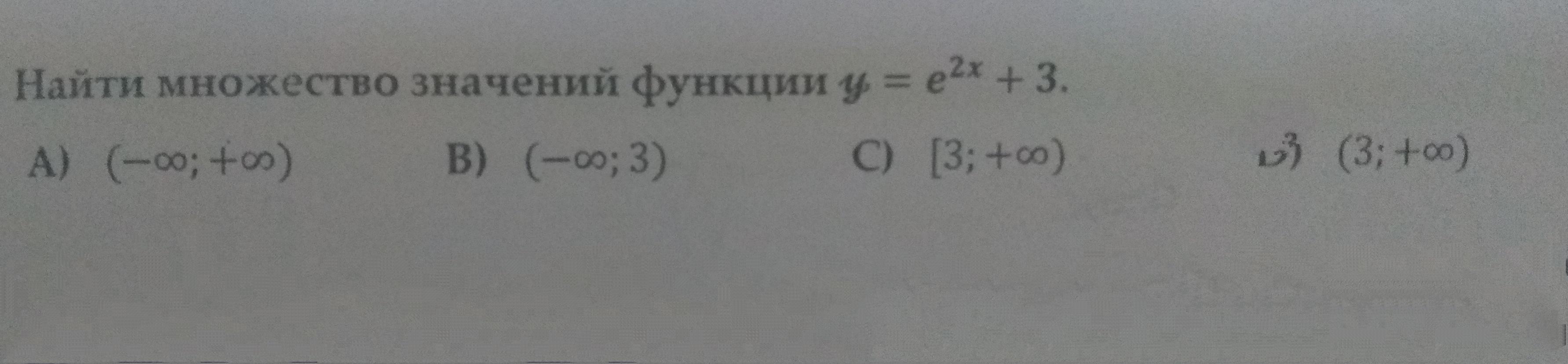 Таким образом множество значений функции y = e^(2x) + 3 есть