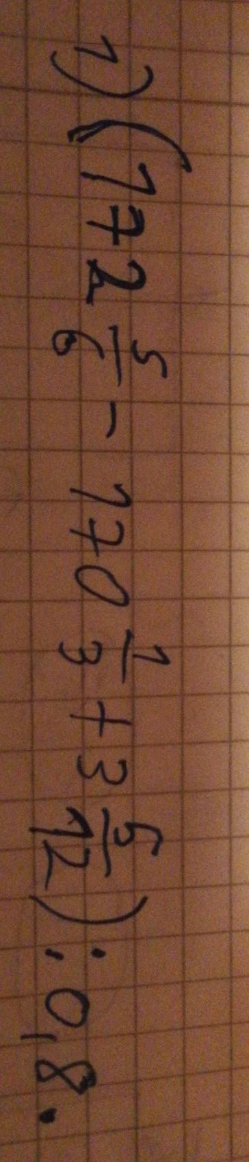 1) 172 5/6 - 170 1/3 + 3 5/12 = 172 10/12 - 170 4/12 + 3 5/12):0.8 = 5 11/12;