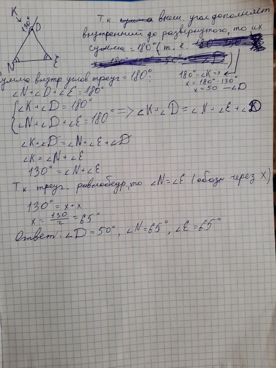2)∠N+∠E=130°Т.К.внешний угол равен сумме внутренних углов не смежных с ним