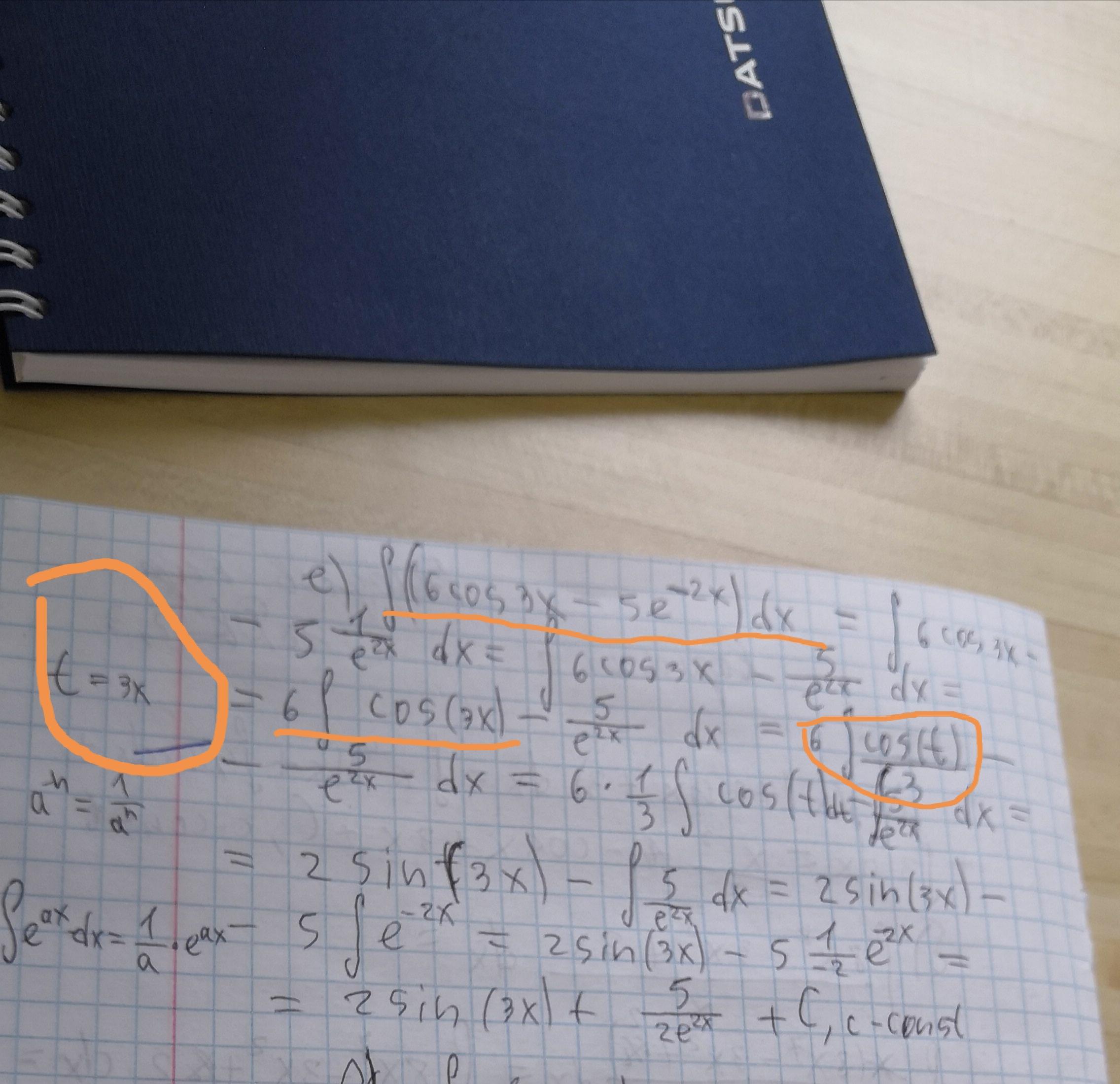 Почему при замене переменной при нахождении интеграла, число которое стояло перед иксом уходит в знаменатель. Это верно, мне просто нужно пояснение, почему число 3 уходит в знаменатель.