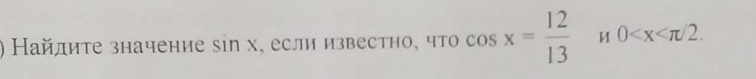 lsinxl=5/13. Вы не пояснили выбор знака. Допишите, пожалуйста, решение.