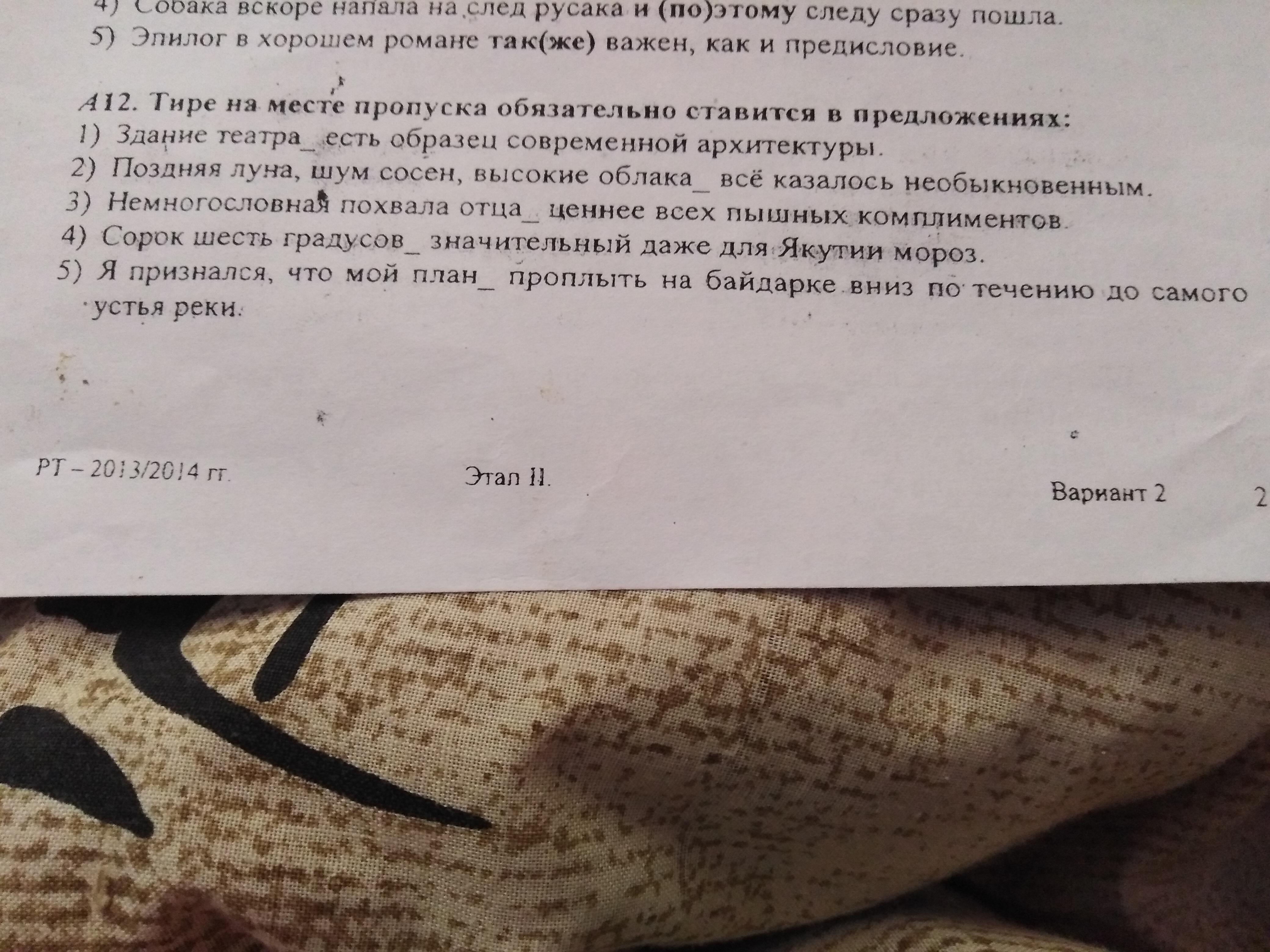 А 12. Тире в предложениях : 2 ( перед обобщающим словом), 4,5( между подлежащим и сказуемым).