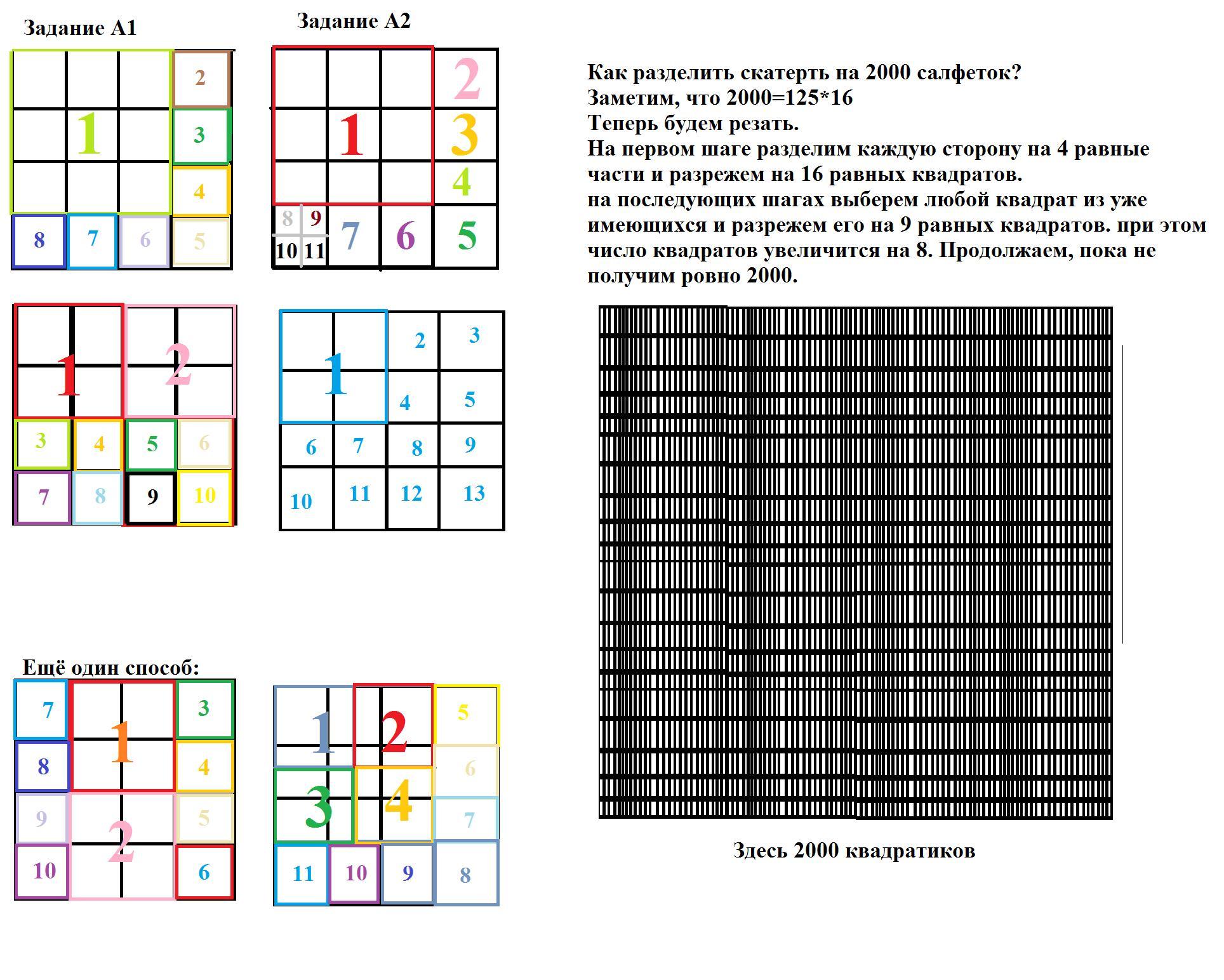 Задание А1 и А2, а так же как разрезать скатерть на 2000 салфеток см. в приложении....
