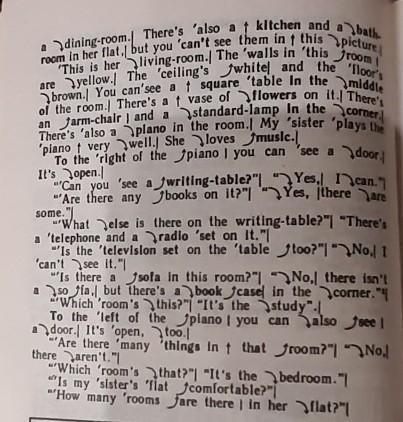dining-room. There's also a kitchen and a bath-room in her flat, but you can't see them in this picture. столовая. Есть также кухня и ванная комната в ее квартире, но вы не можете видеть их на этой фотографии