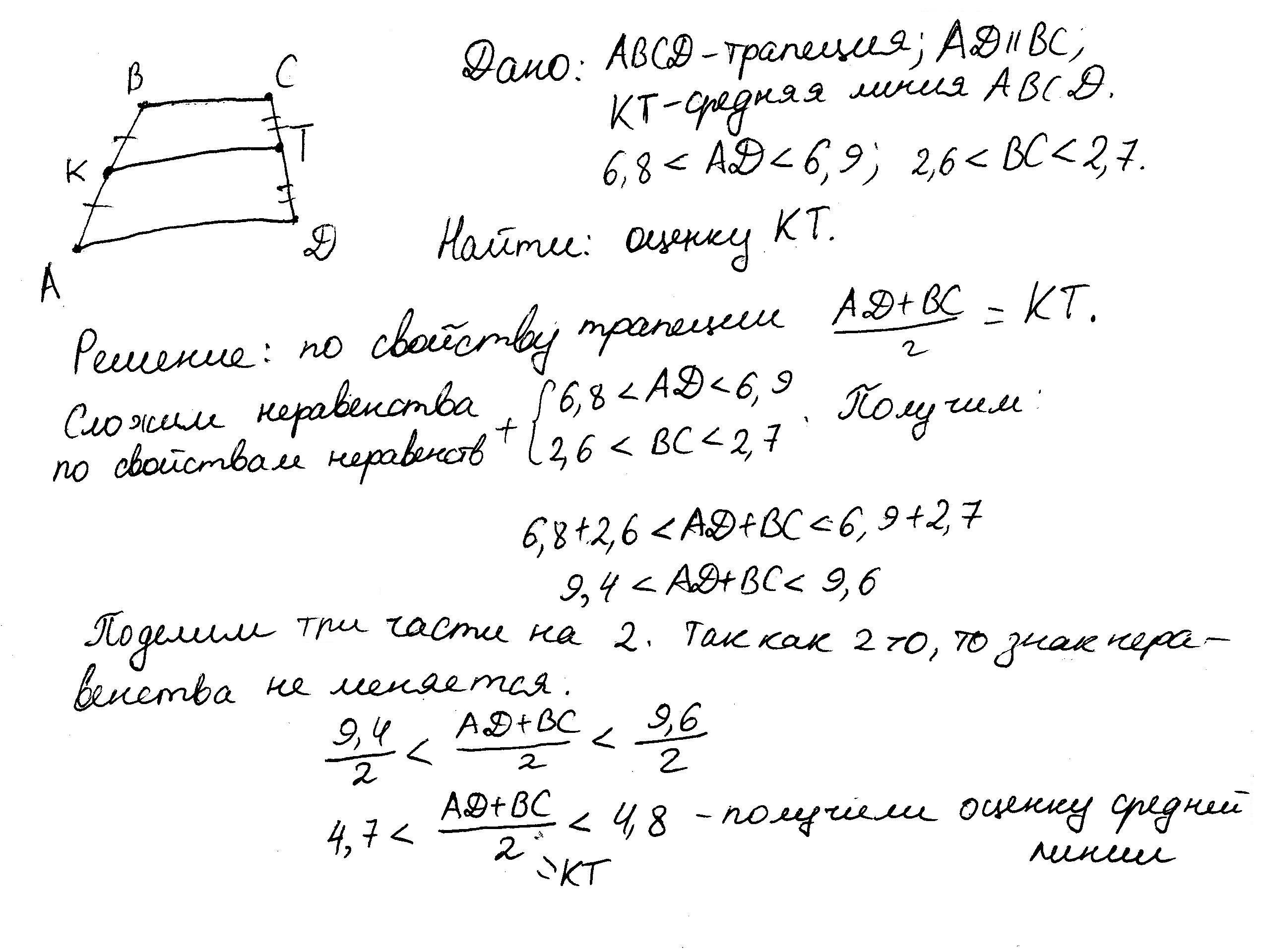 Відомо, що m i n — основи трапеції, с — її середня лінія і 6,8 < m < 6,9, а 2,6 < n < 2,7.