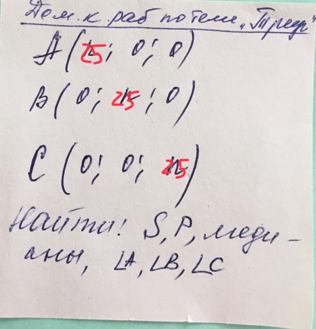 Из задания видно - точки на осях с равными значениями. Значит, треугольник равносторонний, длина стороны равна 25√2.