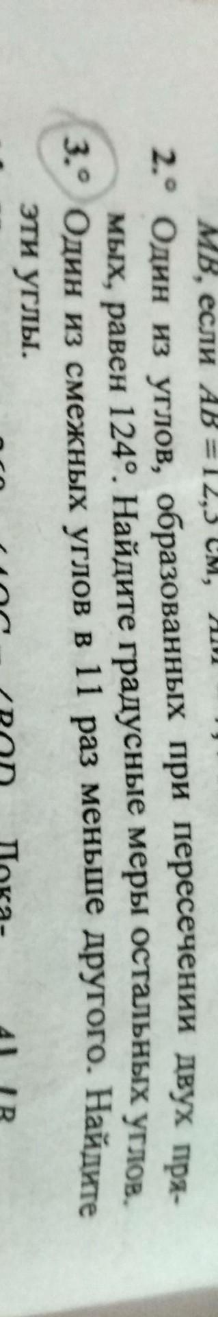 2. Сумма смежных углов равна 180°. Пусть неизвестная градусная мера угла равна х°. Значит х°+124°=180°