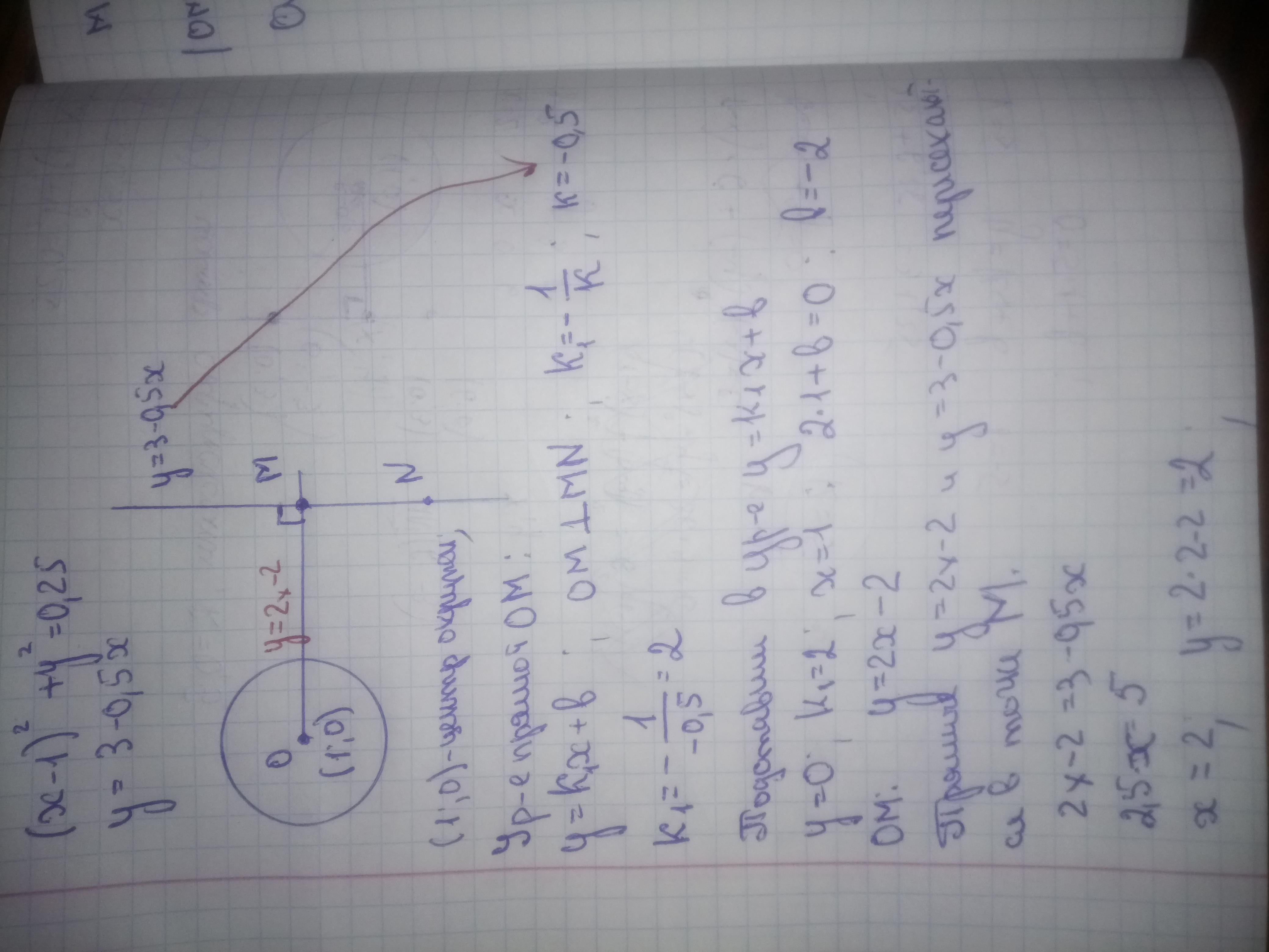 найдите расстояние центра окружности заданной уравнением (х-1)^2+y^2=0,25 до прямой y=3-0,5x С решением пожалуйста