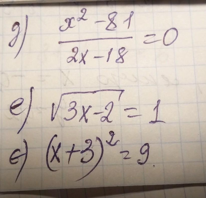 е) Чтобы решить корень, нужно возвести в квадрат оба выражения. Квадратный корень уйдёт и мы сможем решить уравнение :)