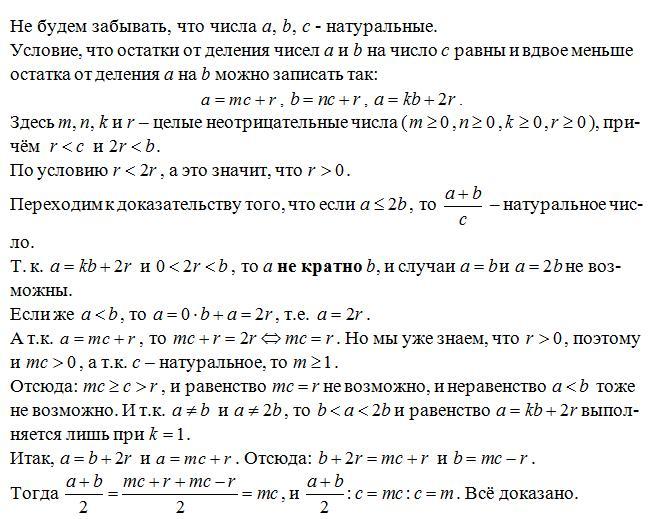 Тогда (a + b)/2 = (mc + r + mc - r)/2 = mc, и (a + b)/2 нацело делится на с. Всё доказано.