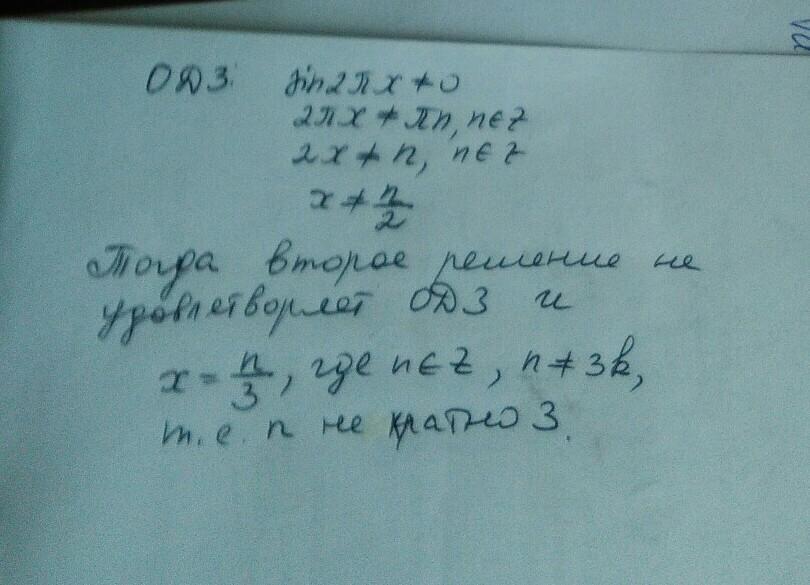 cos(П/2 - 2Пх) ≠ 0