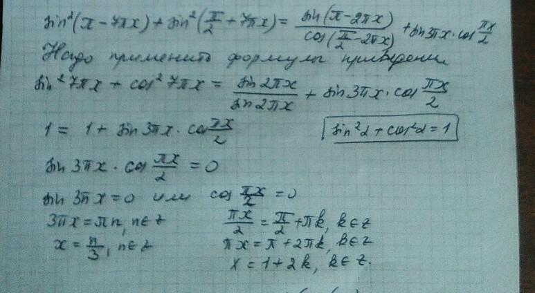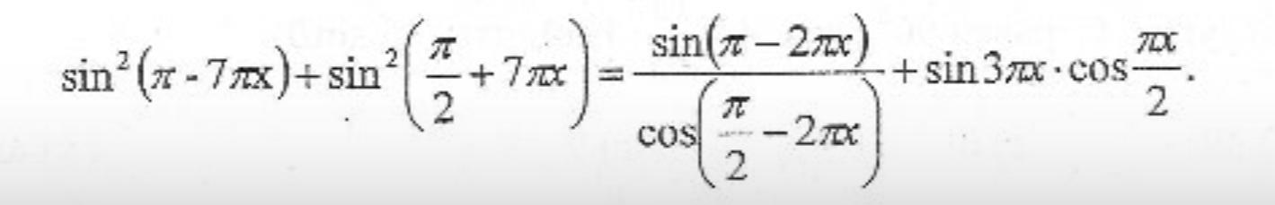 sin^2(7Пх) + cos^2(7Пх) = sin(2Пх) / sin(2Пх) + sin(3Пx)*cos(Пх/2)