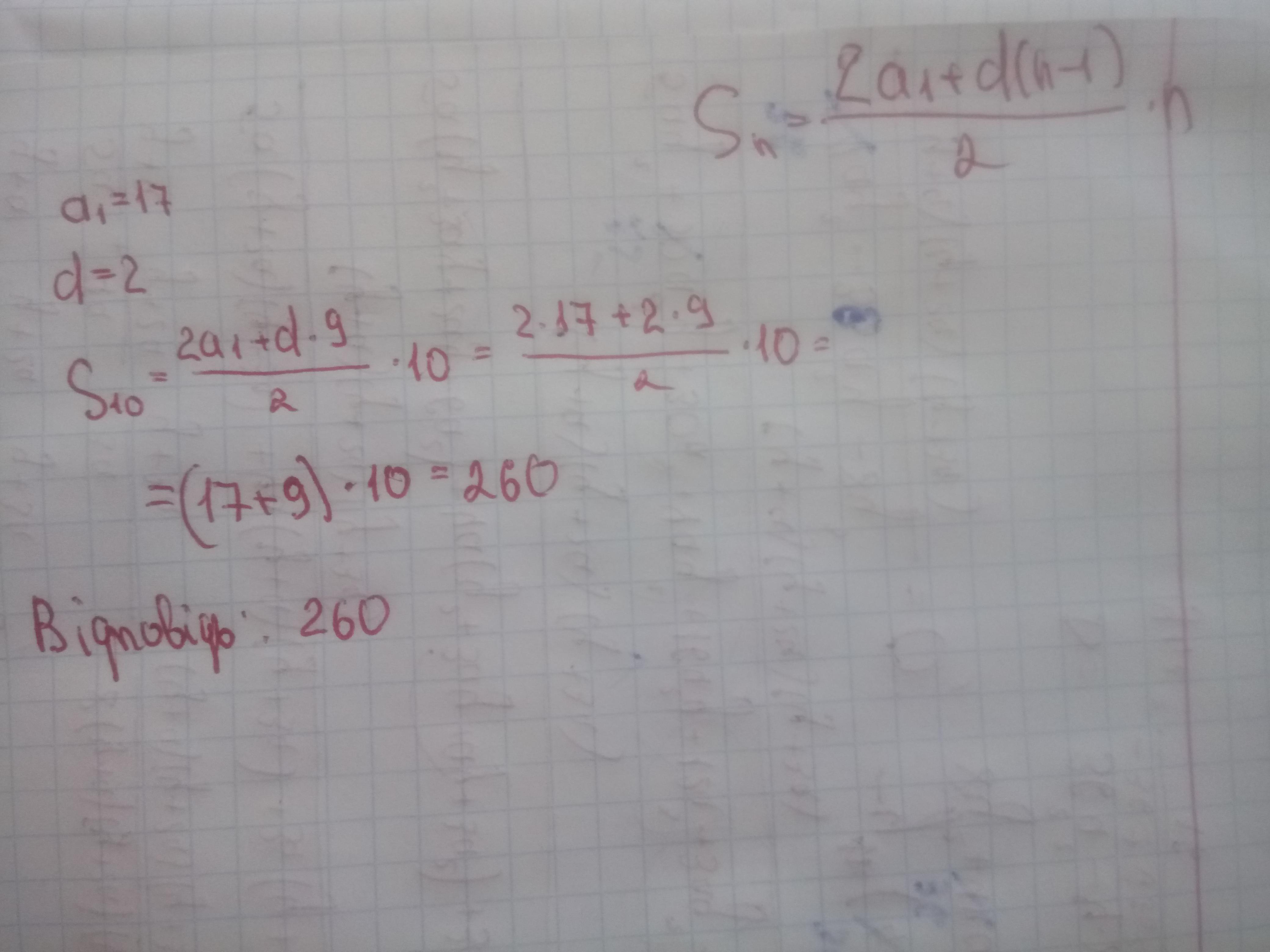 Sn=(2×17+(10-1)×2)×10/2=(34+18)×5=260