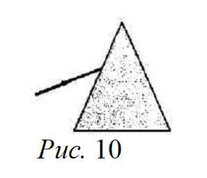 Нарисуйте схематически ход луча через треугольную стеклянную призму (рис. 10). Как изменится ход луча, если он проходит через воздушную призму (полость) в стекле?