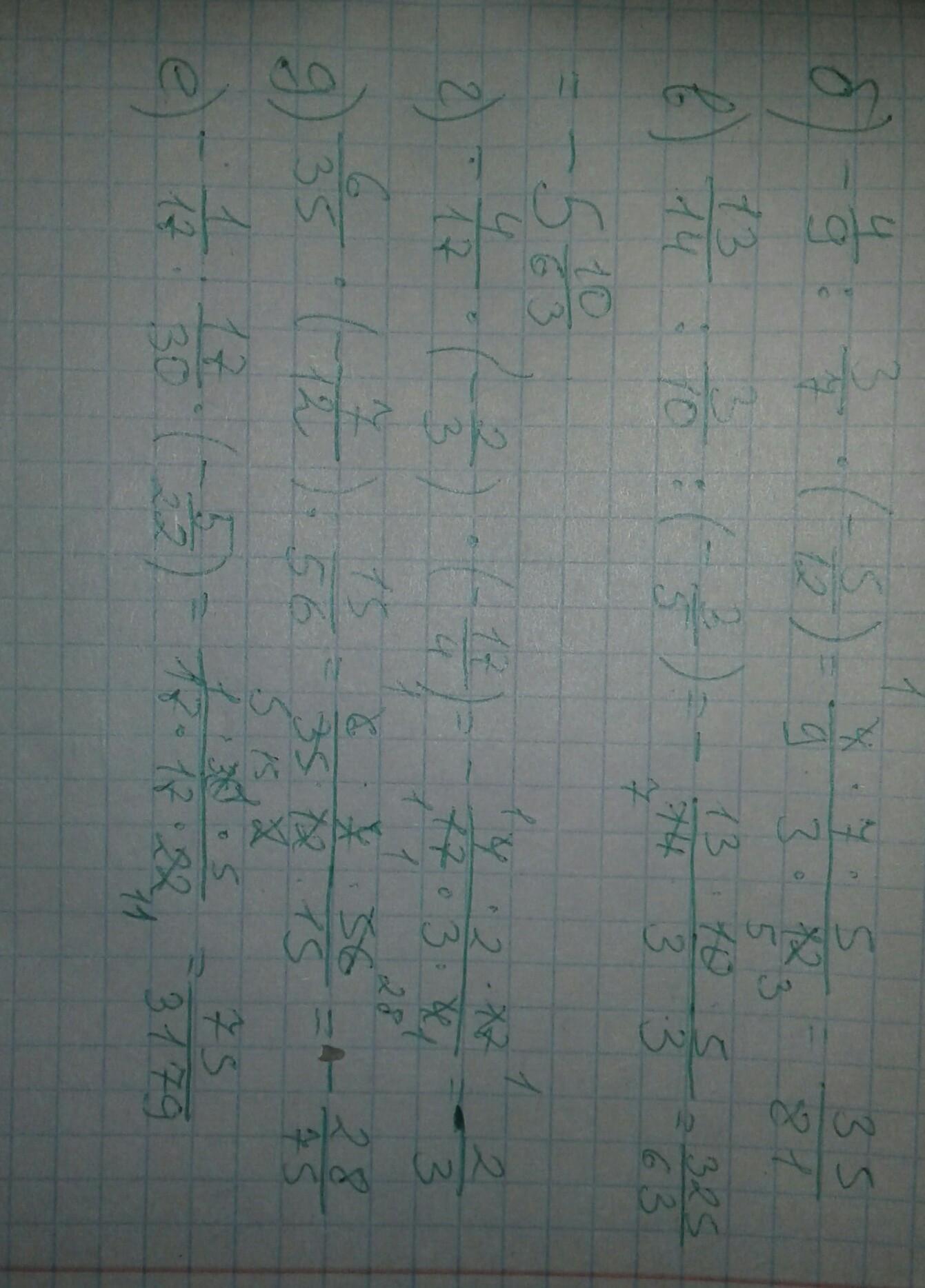 ПОМОГИТЕ РЕШИТЬ ПРИМЕРЫ,Я РЕШИЛ,НО НЕМНОГО СОМНЕВАЮСЬ В ОТВЕТЕ1.-4/9:3/7*-5/122.13/14*:3/10:-3/53.-4/17*-2/3*-17/44.6/35*-7/12:15/565.-1/17:17/30*(-5/22)