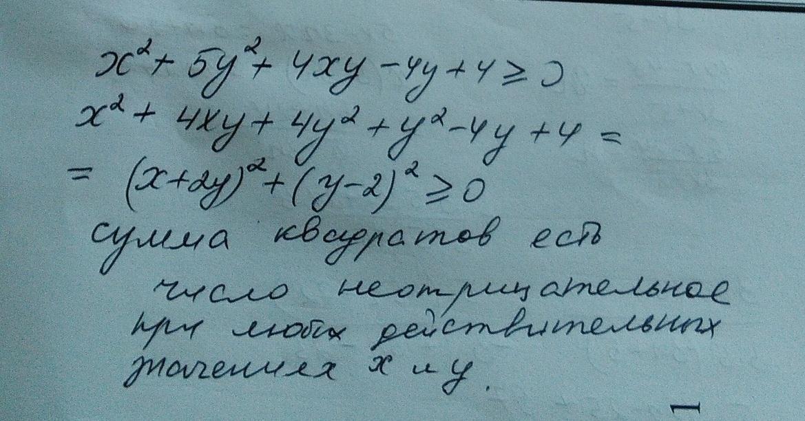 х^2 + 5у^2 + 4ху - 4у + 4 ≥ 0
