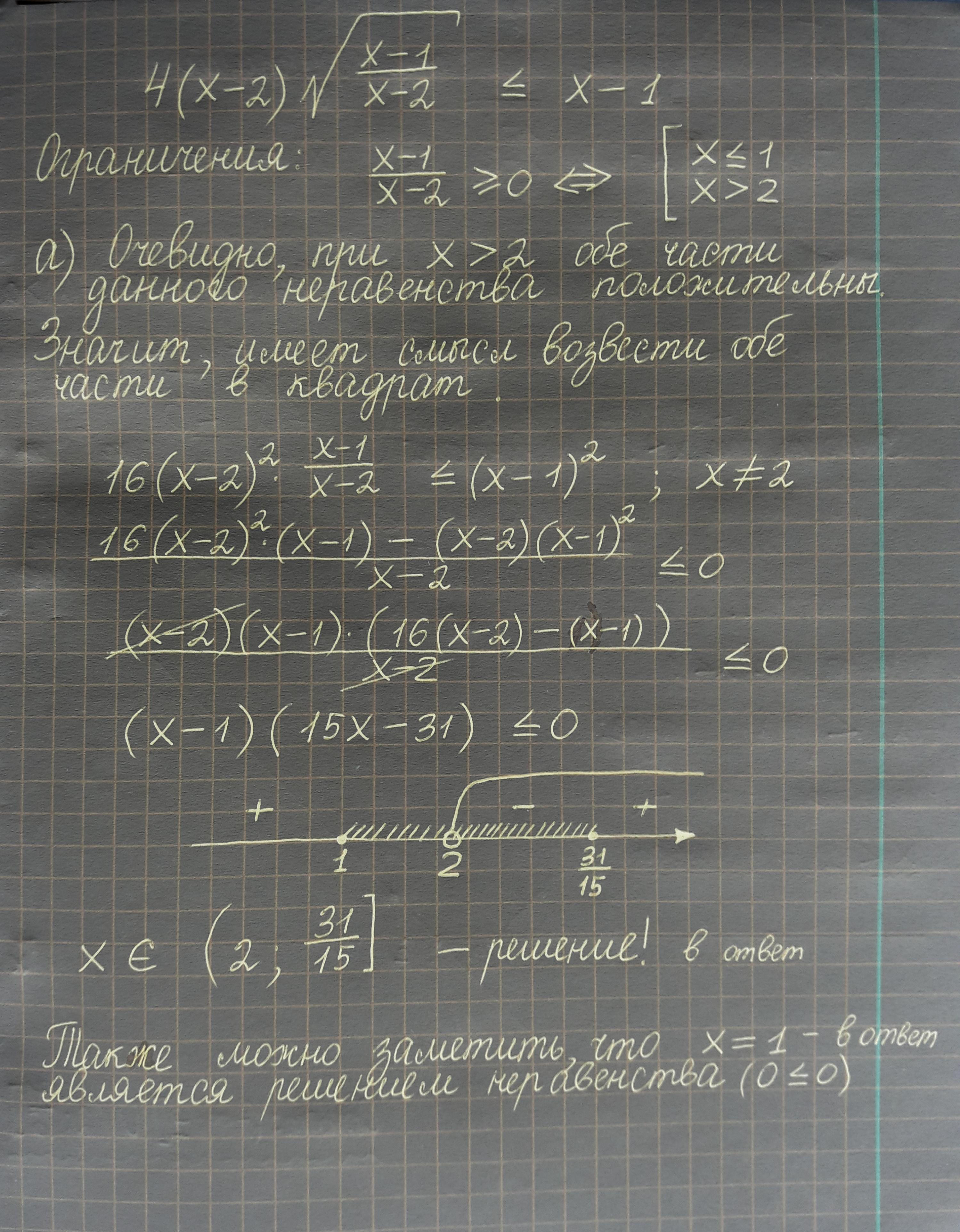 4(x-2)sqrt((x-1)/(x-2))≤x-1; 4sqrt(x-2)≤sqrt(x-1);