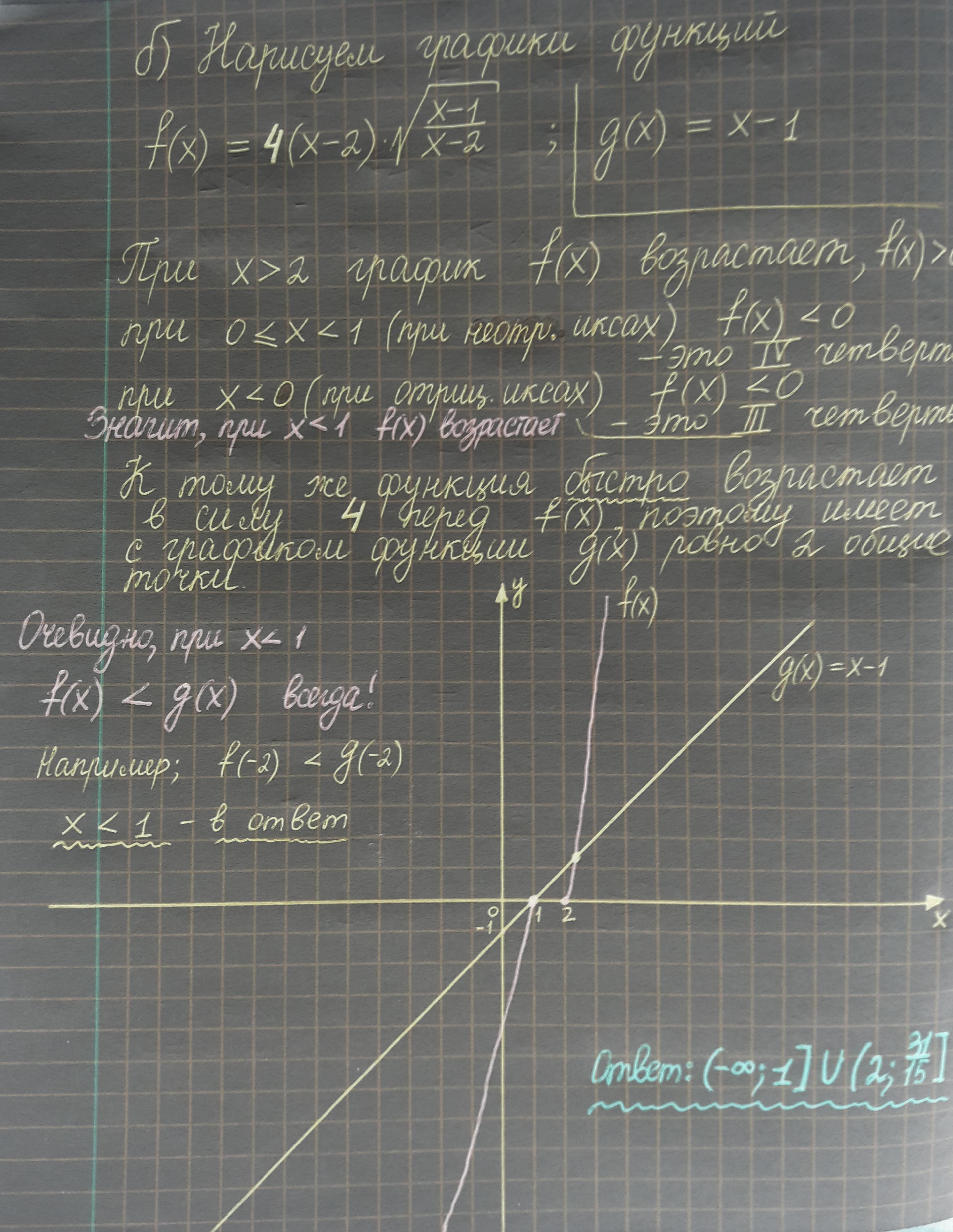 Итого: x∈(-∞; 1]U(2; 31/15]