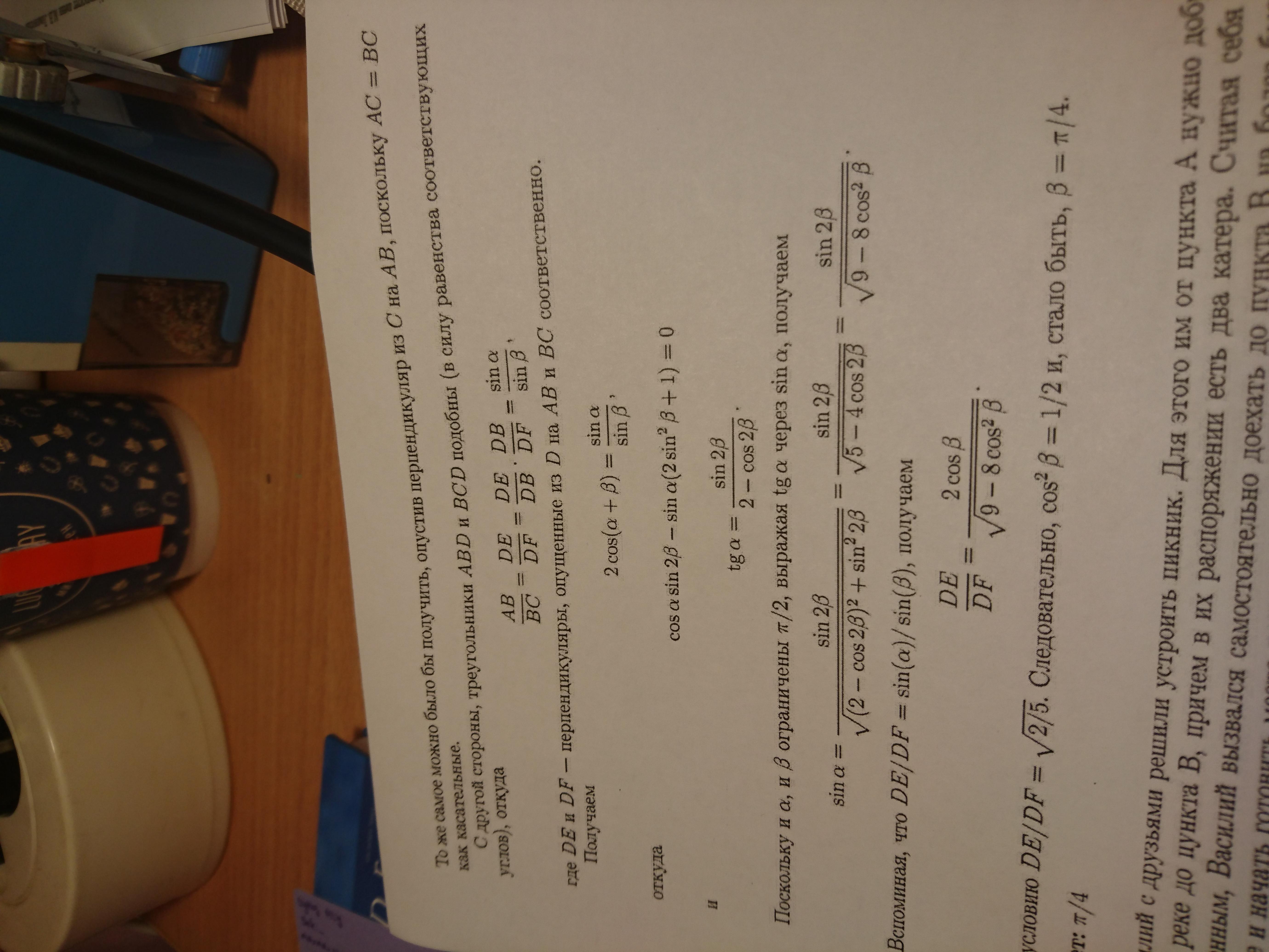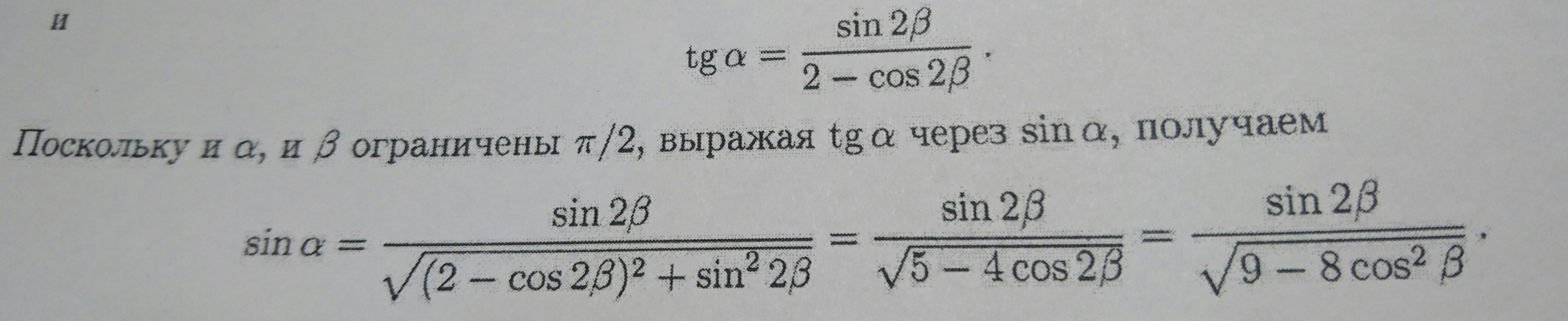 Как сделали переход от тангенса к синусу? Через какую формулу? Если кому-то нужно полное решение, то на 2 фотографии(хотя это понадобится)
