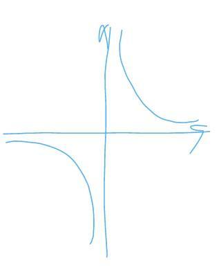 График сместился вниз и влево относительно осей. Следовательно, по превращению графиков a<0, b>0. График обратно пропорциональной зависимости 1/х выглядит схематично так,как на рисунке, следовательно,k<0, поскольку график симметричен относительно оси Х.