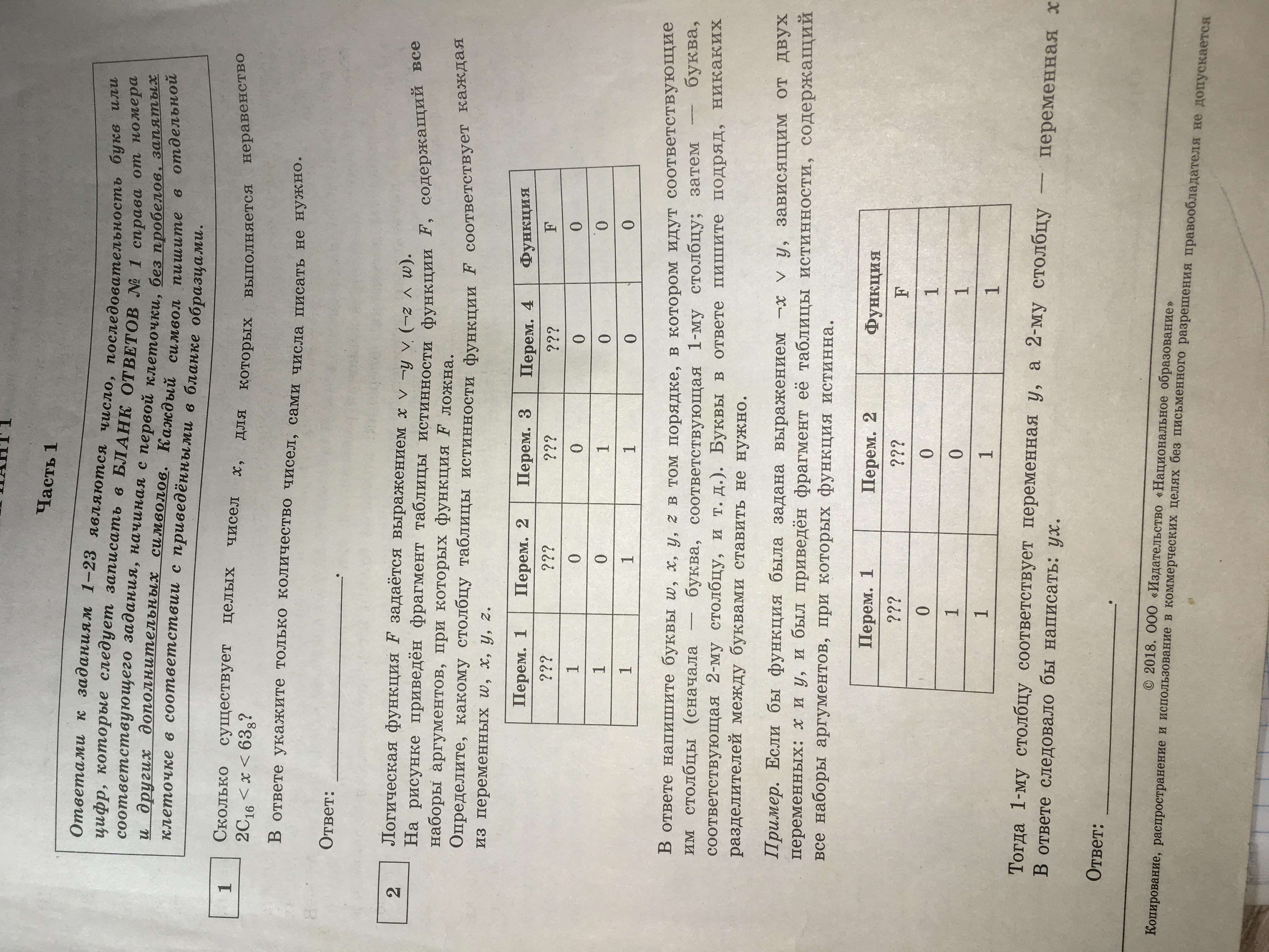 везде стоит функция "или" ложна она тогда, когда все операнды (переменные) ложны. Видим скучающую переменную "х", если она будет равна 1 все выражение будет 1, значит в таблице в этом столбце должен быть 0 соответственно это последний столбец. По соседству с х, видим скучающую переменную "у" перед ней отрицание значит в таблице в этом столбце должны быть все 1 (отрицание имеет наивысший приоритет) остаётся разобраться со средними столбцами. z - 3 столбец w - 2