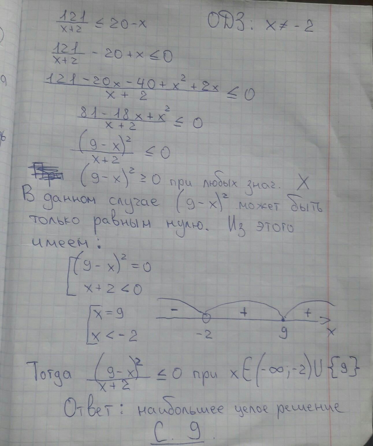Т.к. (х-9)^2>=0, то (х+2)<=0 ------(-2)-----[9]----->x