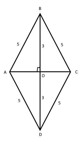 Рассм.Δ, образованный стороной ромба 5 см и половинами диагоналей. Это прямоугольный египетский Δ со сторонами 5; 3; 4. (диагонали ромба ⊥)