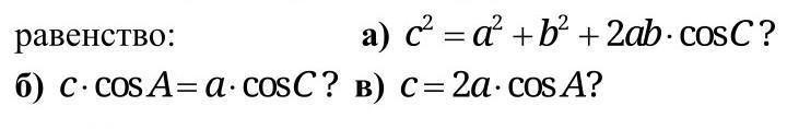 б) Отношение а к с равно отношению косинуса А к косинусу С. Возьмем, например, угол А и угол С по 45°, а угол В прямой. Тогда при выполнении неравенства треугольников такой треугольник прямоугольный равнобедренный существует.