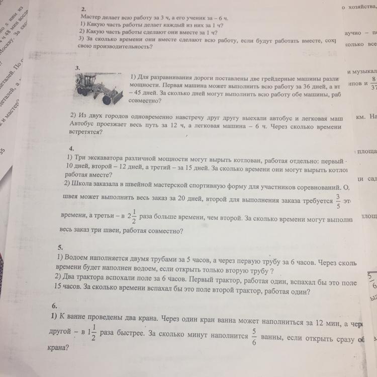 1) 1 : 6 = - площадь, вспаханная обеими тракторами за 1 час.