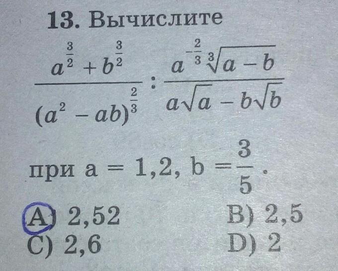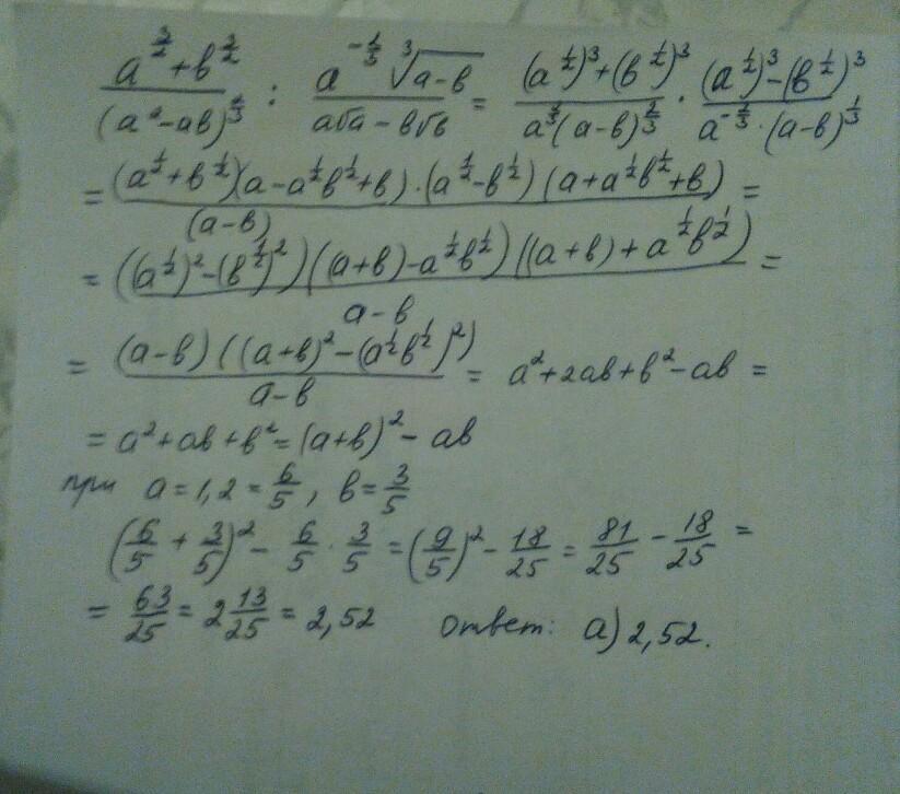 Решите наиболее быстрым и удобным способом. (p.s у меня вышло (a²+ab+b²)/^3√a , подставляю значение и что-то не то.)