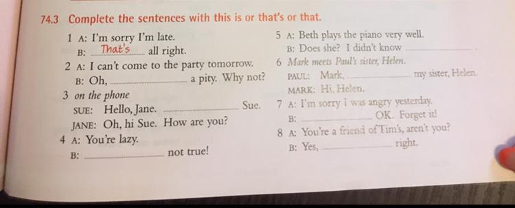 74.3 Complete the sentences with this is or that's or that.
