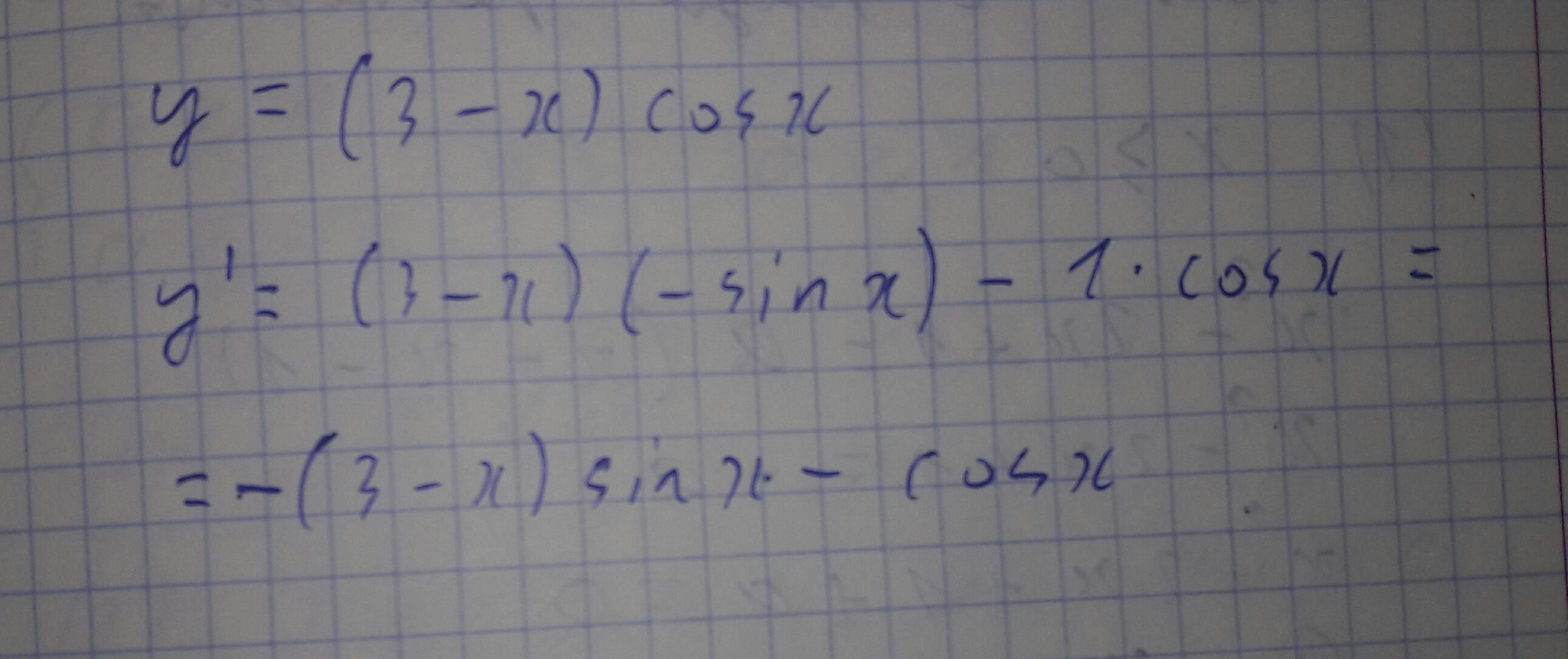 Ответ: производная равна -cos(x)-sin(x)*(3-x).