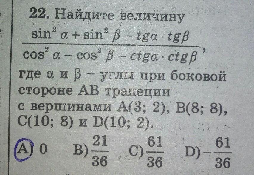 cos(a) = 5/sqrt(61) и cos(b) = -5/sqrt(61) это подсказка )