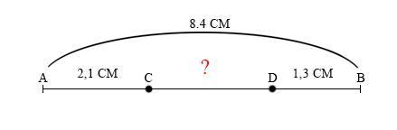 1) CD = AB - ( AC + BD ) = 8.4 - ( 2.1 + 1.3 ) = 8.4 - 3.4 = 5 см.