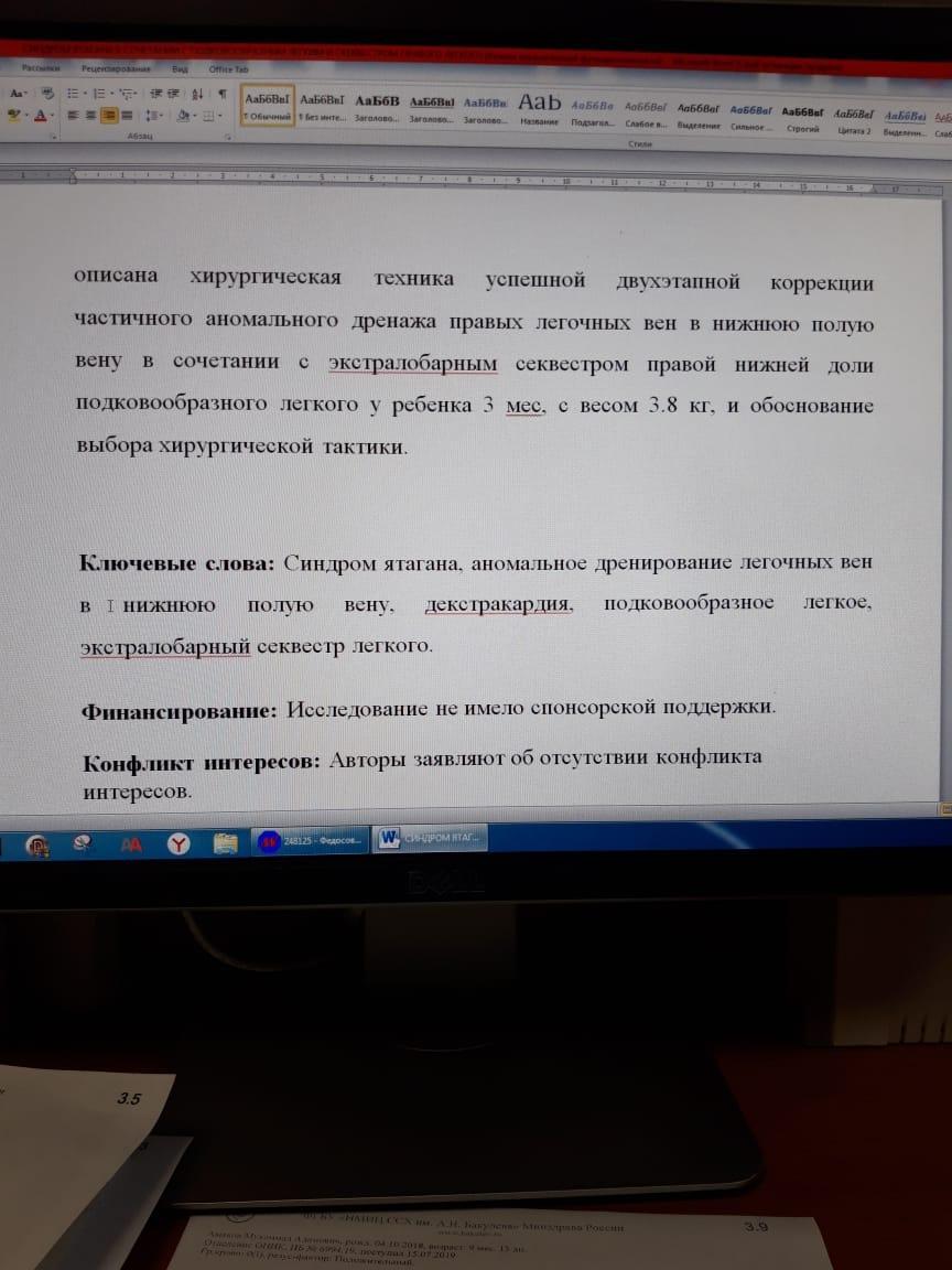 describes a surgical technique for successful two-stage correction of partial abnormal drainage of the right pulmonary veins into the inferior vena cava in combination with an extralobar of the right lower lobe of the horseshoe-shaped lung in a child of 3 months. with a weight of 3,8 kg, and the rationale for the choice of surgical tactics.