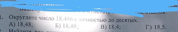 Объяснение: сначала округляем до сотых, т.к. последняя цифра 6, то можно округлить до 49. Потом округляем до десятых, т.к. последняя цифра 9, то округляем до ближайшего значения то есть 50. Ответ 18,5