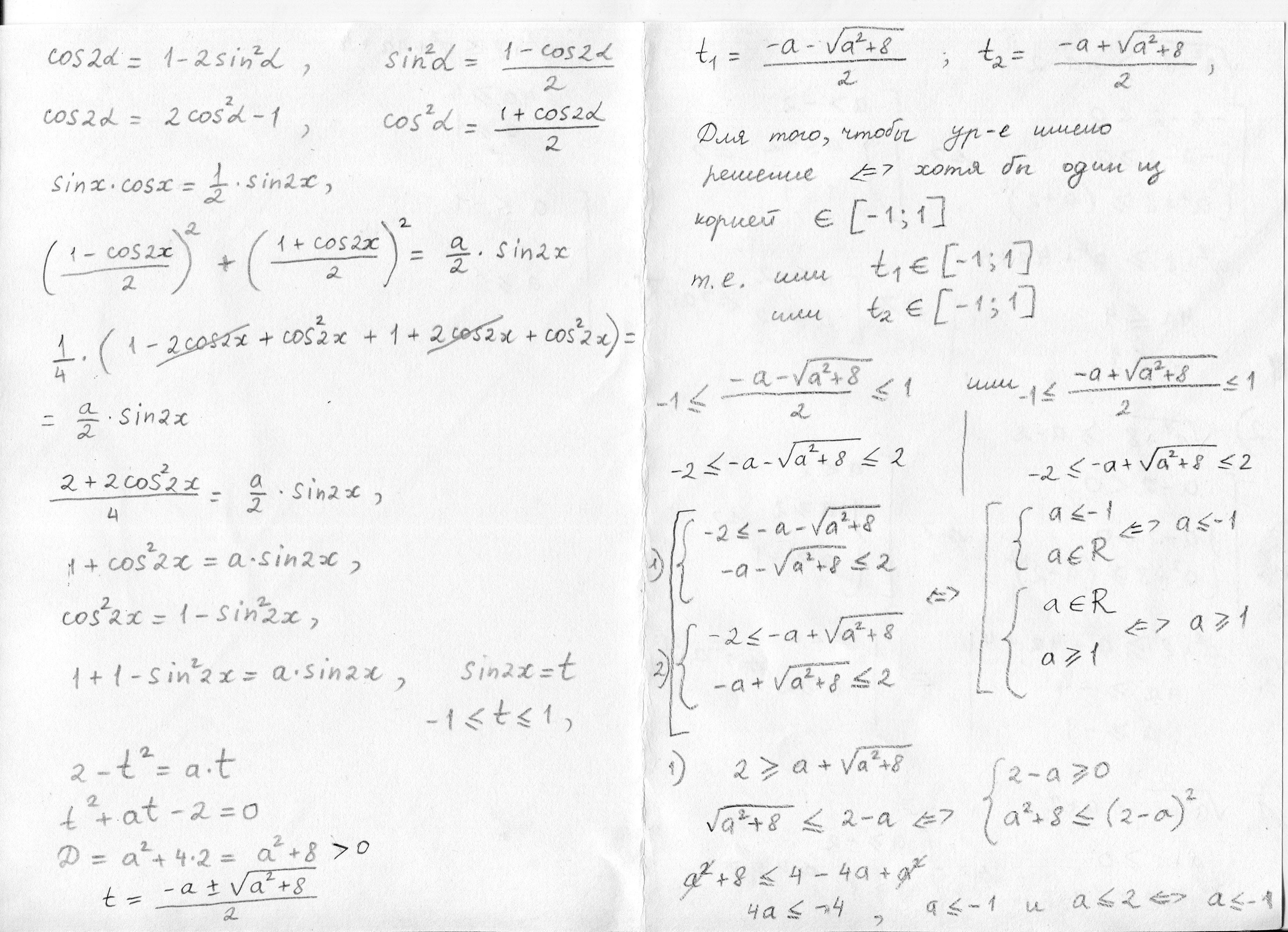Укажите все значения параметра, a при каждом из которых уравнение sin^4x+cos^4x=a*sinx*cosx имеет решения