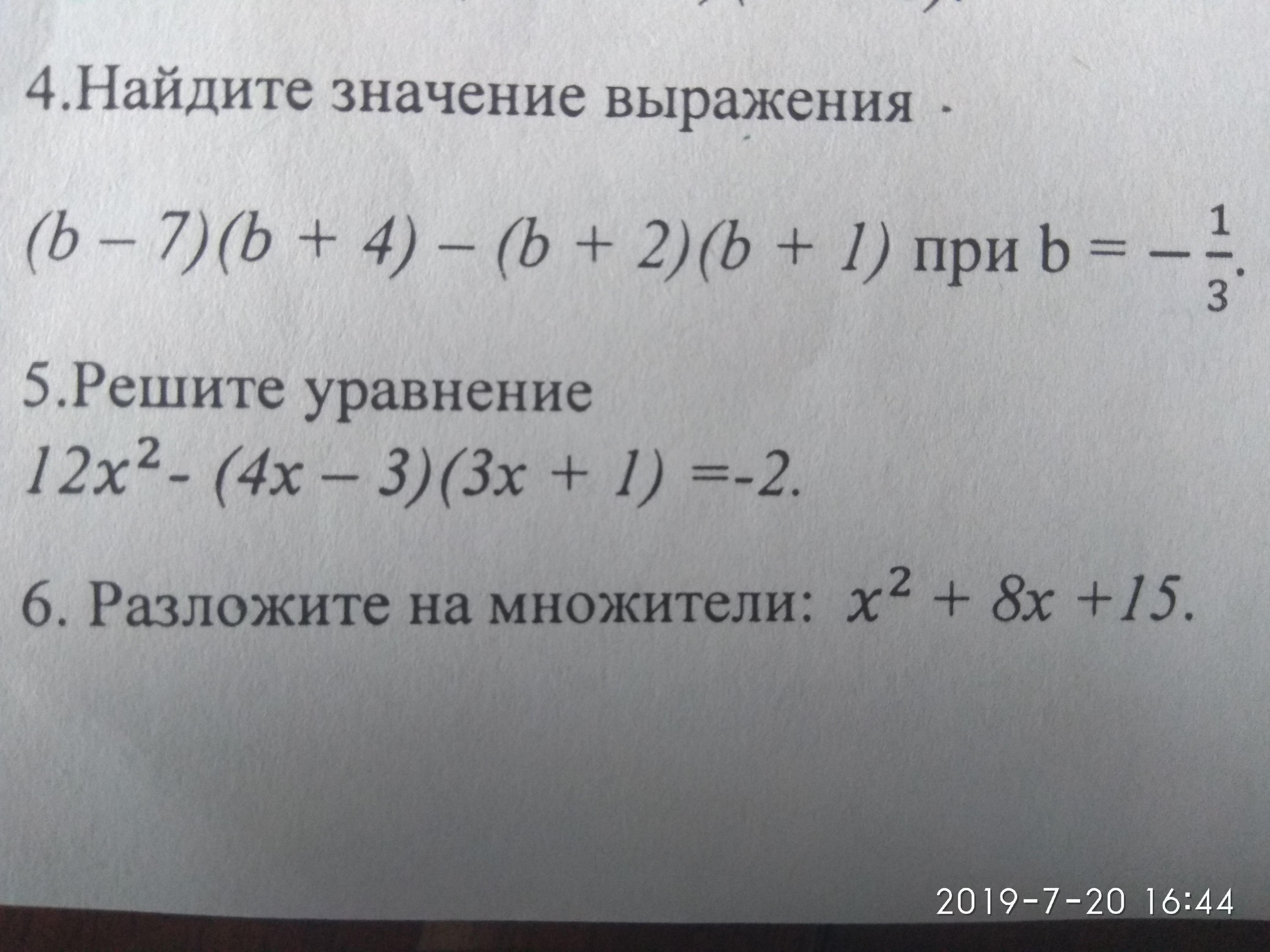 4. При b =-1/3 выражение