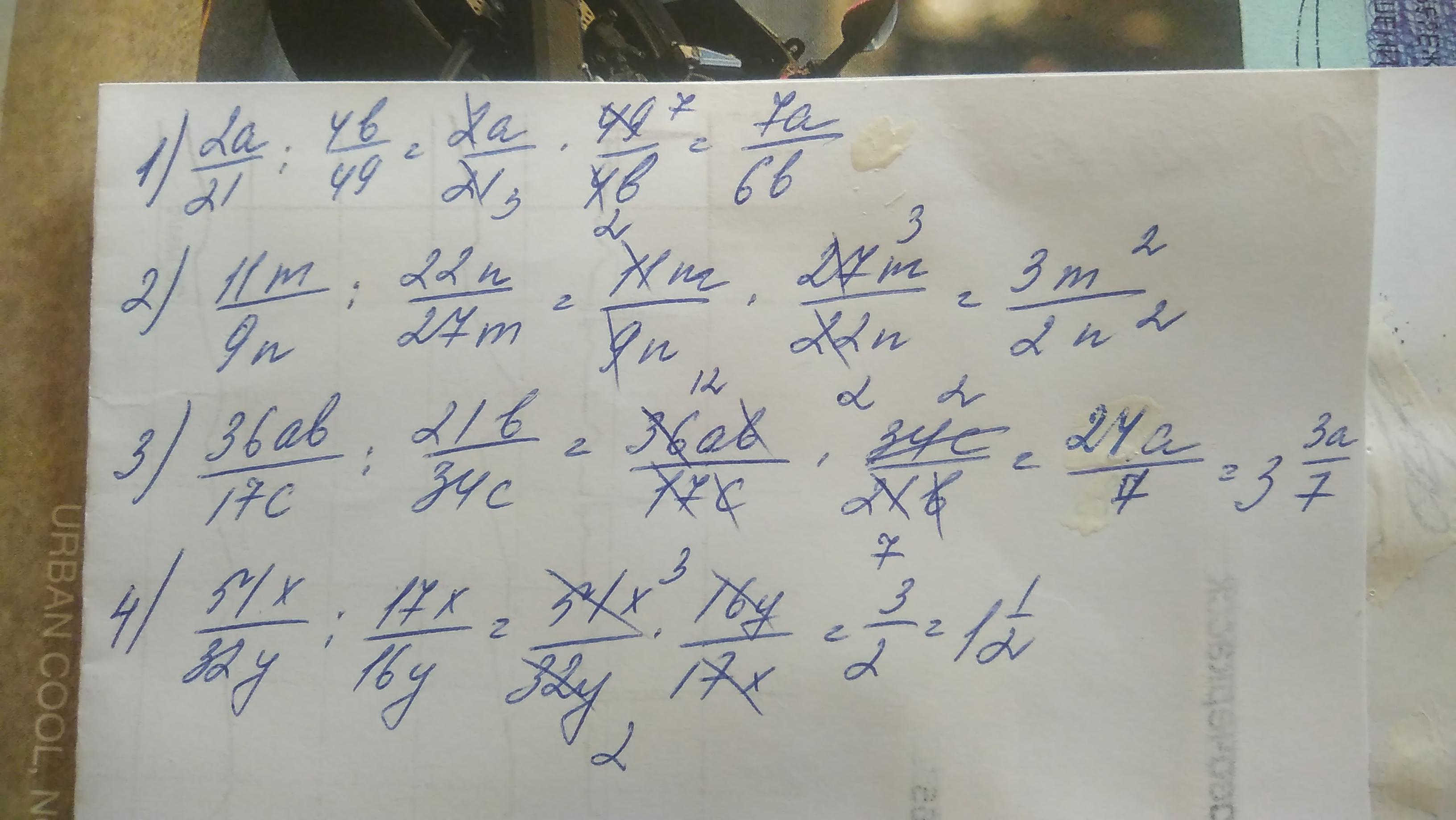 виконайте ділення: 1)2а/21 : 4b/49 ;