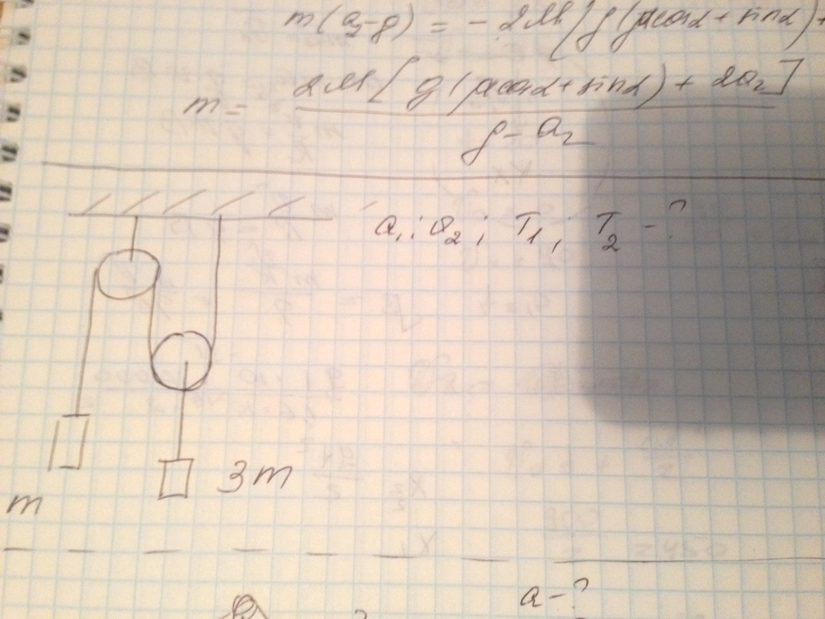 Найти ускорение блоков и натяжение нити,расставить силы.