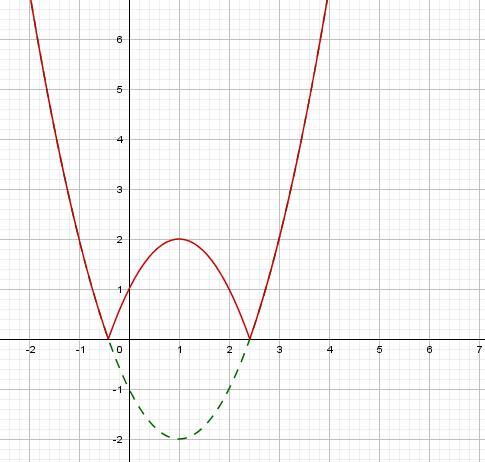 , ветви которой направлены вверх, координаты вершины параболы: (1;-2). После чего нижнюю часть графика симметрично отобразим в верхнюю часть, в результате получить график функции