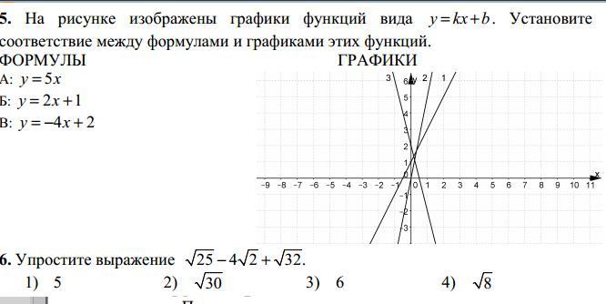 5. А - 2, т.к это прямая пропорциональность, а ее график проходит через начало координат